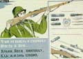 Комсомолец будь готов к обороне СССР. Учись стрелять метко!Во что бы то ни стало!Портрет СталинаЧтоб меткость и сноровку иметь в бою, храни боец винтовку как жизнь свою.Отстоим Кавказ!