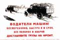 Водители машин! Бесперебойно, быстро, в срок доставляйте грузы на фронтУдарной работой обеспечим своевременный пуск гигантов пятилеткиНа штурм четвертого последнего года пятилеткиРаздавим фашистскую гадинуОктябрьский ураган